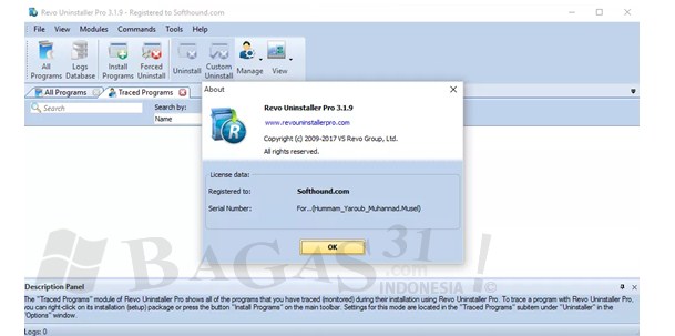 Revo Uninstaller Pro 3.1.9 Full Version adalah sebuah software yang berguna untuk membantu kita dalam menghapus atau uninstal software yang ada di komputer secara lebih mendalam. Artinya tidak hanya file nya saja, registry dari software dan segala jenis dari software itu akan dihapus secara tuntas. Hal ini penting agar tidak menumpuknya file sampah (junk files) yang disebakan oleh hasil sisa uninstal yang tidak bersih.